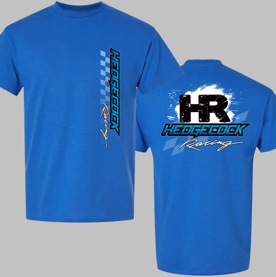 BLUE HEDGECOCK RACING T-SHIRT WITH WHITE AND BLUE DESIGN